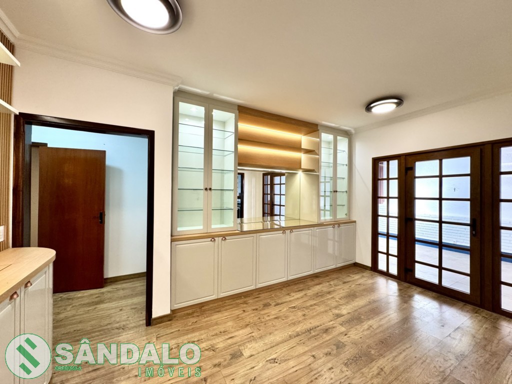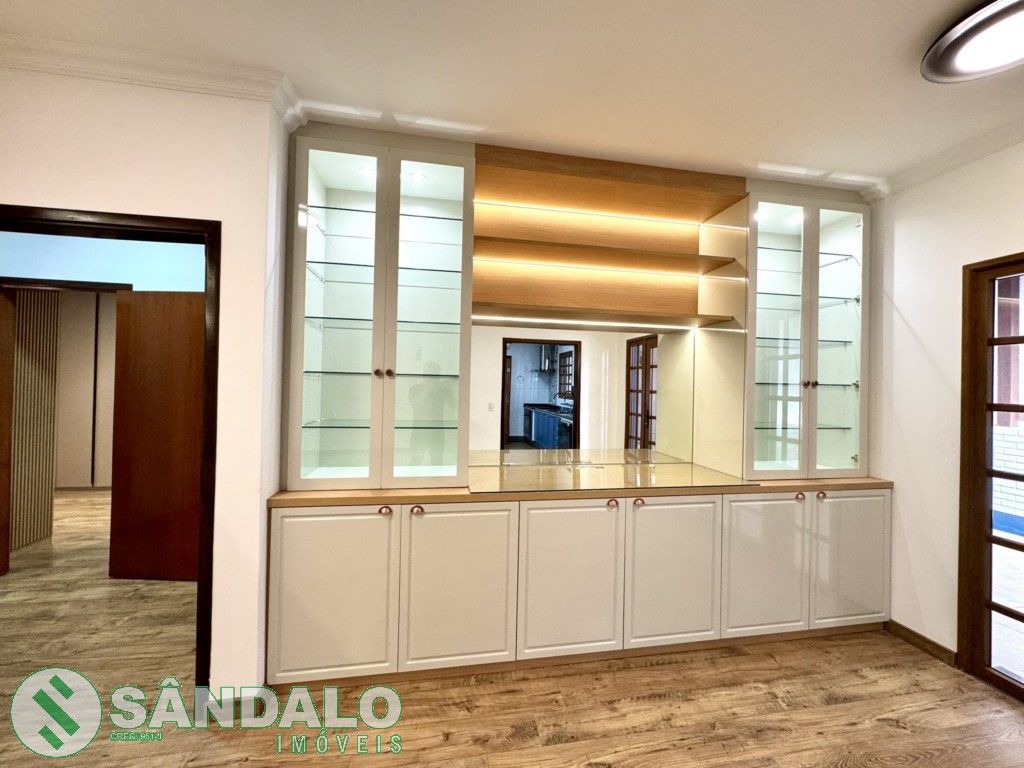 - Sala da jantar com armário planejado e painel de tv;